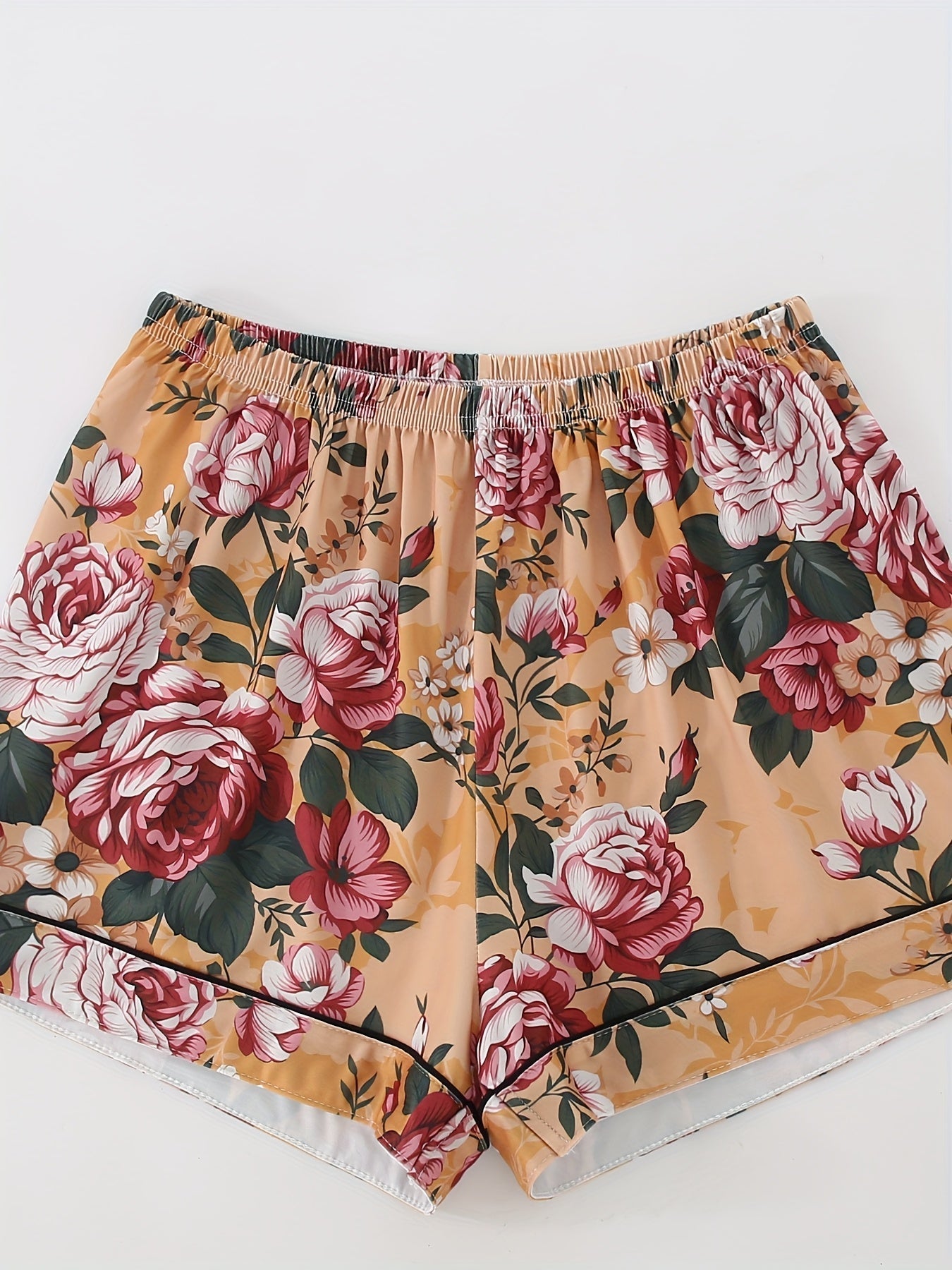 Made from silky-smooth, breathable, and lightweight fabric, this set ensures ultimate comfort while keeping you stylish at night. The elastic waistband provides a flexible fit, and the choice of shorts or pajama pants makes it versatile for every season. Perfect for those who love floral fashion even at home.