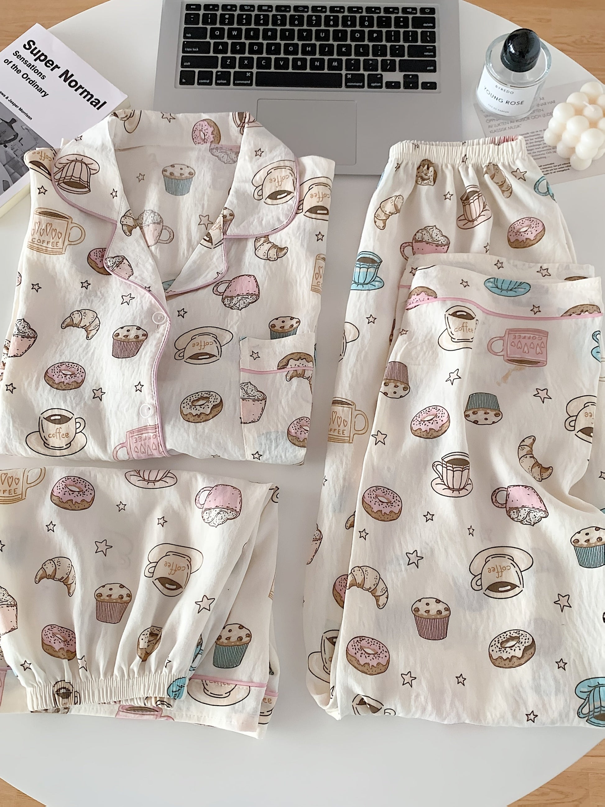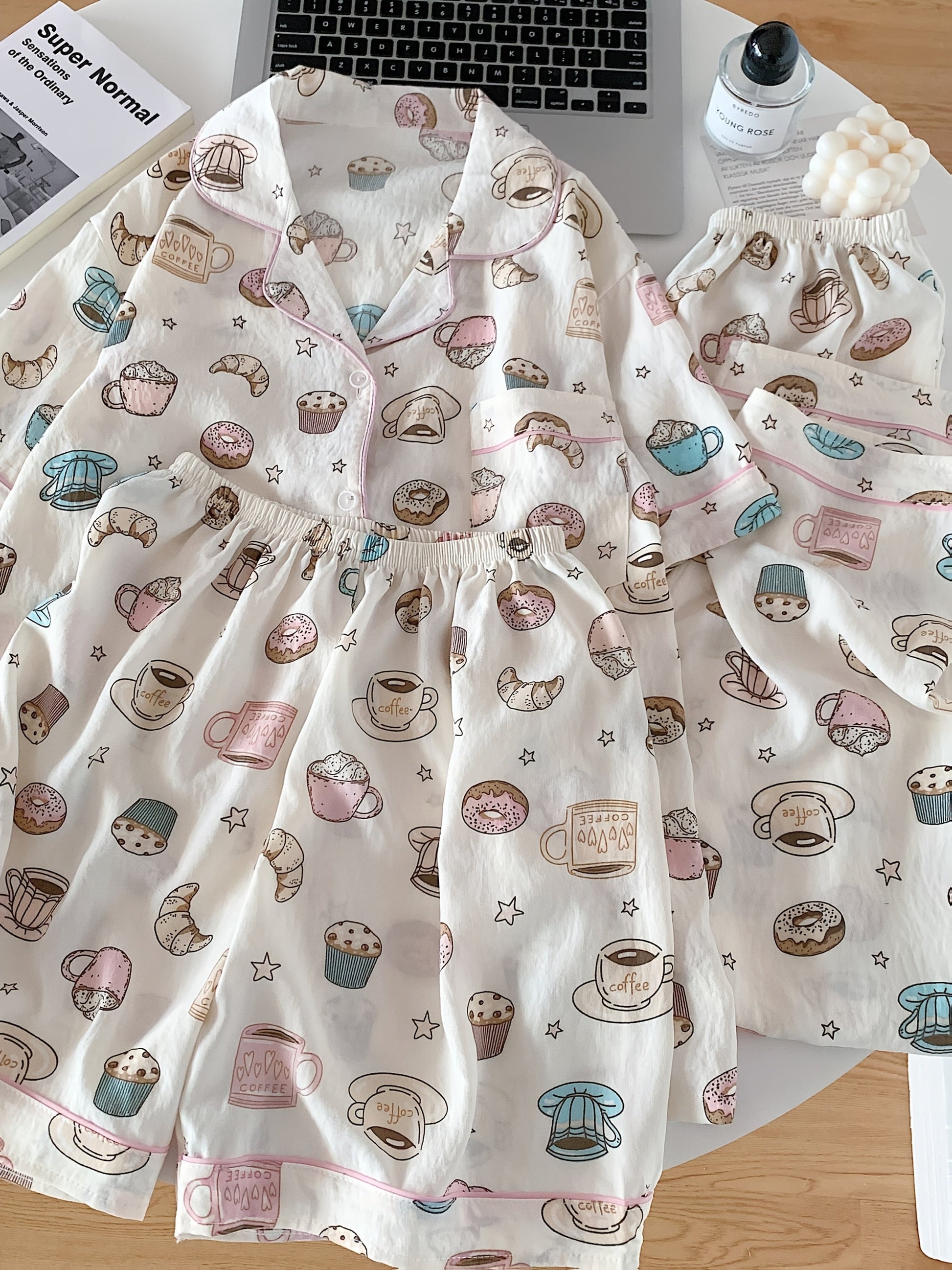 Coffee & Donuts Print Pajama Set – Shirt, Shorts & Pants